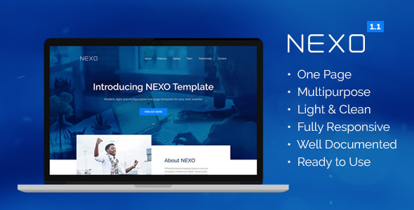Introducing NEXO Template – a modern, light and multipurpose one page for your next project. Fully responsive and mobile ready, tested across modern browsers and devices. Build a beautiful website with ease.