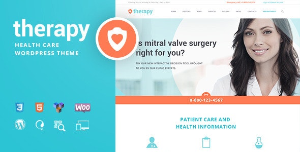 Therapy – beautiful crisp & powerful multi-concept Health and Medical WordPress Theme. It has a fresh and clean design, and it is a perfect responsive template for hospital services, clinic, ambulance, nursing care, medical institution agency. Also it works for medical equipment shop, corporate business company, medical hospice center, clinique, infirmary firm, convalescent home or even sanatorium.